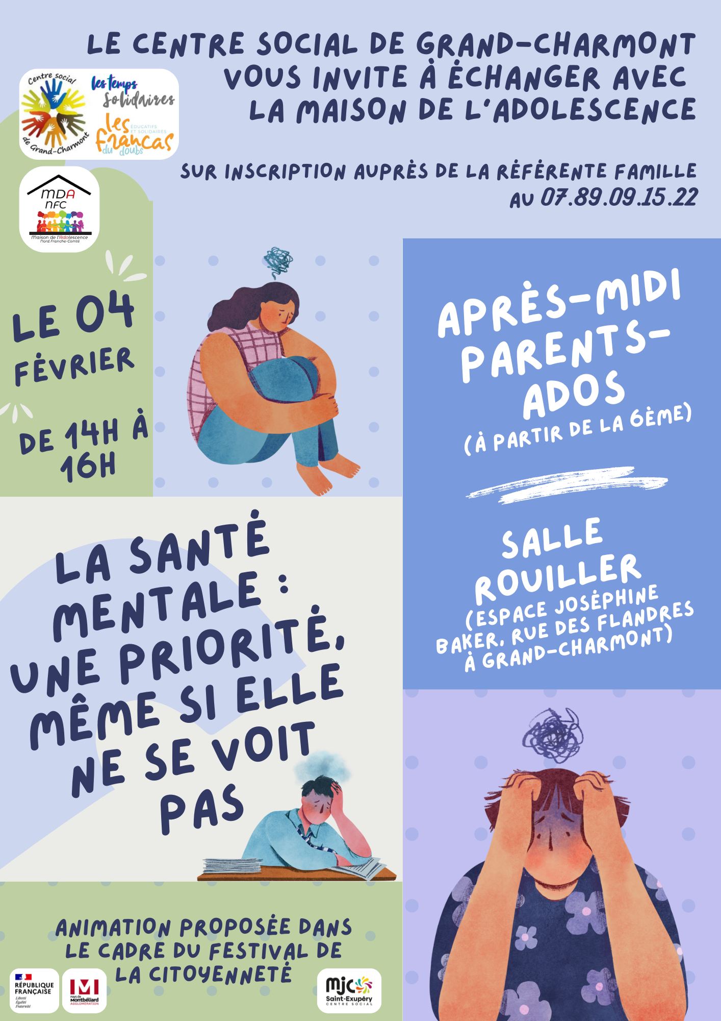 Mercredi 4/02 de 14h00 à 16h30 à la MJC Saint-Exupéry d’Audincourt